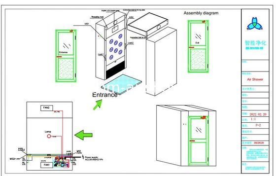 The two doors of the automatic air shower are electronically interlocked and can function as an air lock chamber to prevent external pollution and unpurified air from entering the clean area.